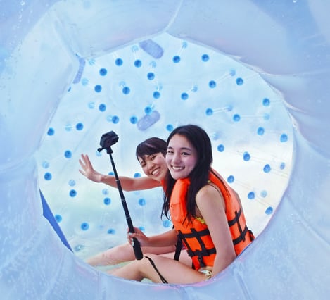 雨の日にも遊べる、お子様と巨大なボールの中に入って今まで味わったことがない体験を!