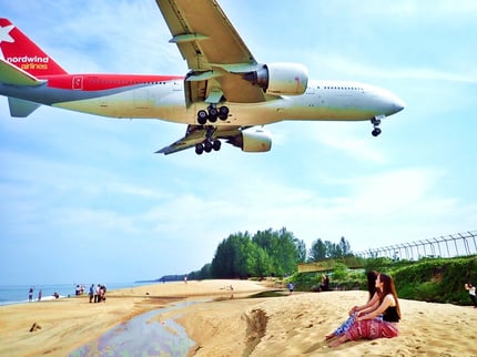 飛行機発着をビーチでスタンバイ! セントマーチン並みの大迫力!