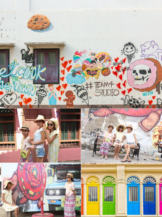 今大人気のカフェやお土産屋さんの前はインスタ映えする壁画もあります。
